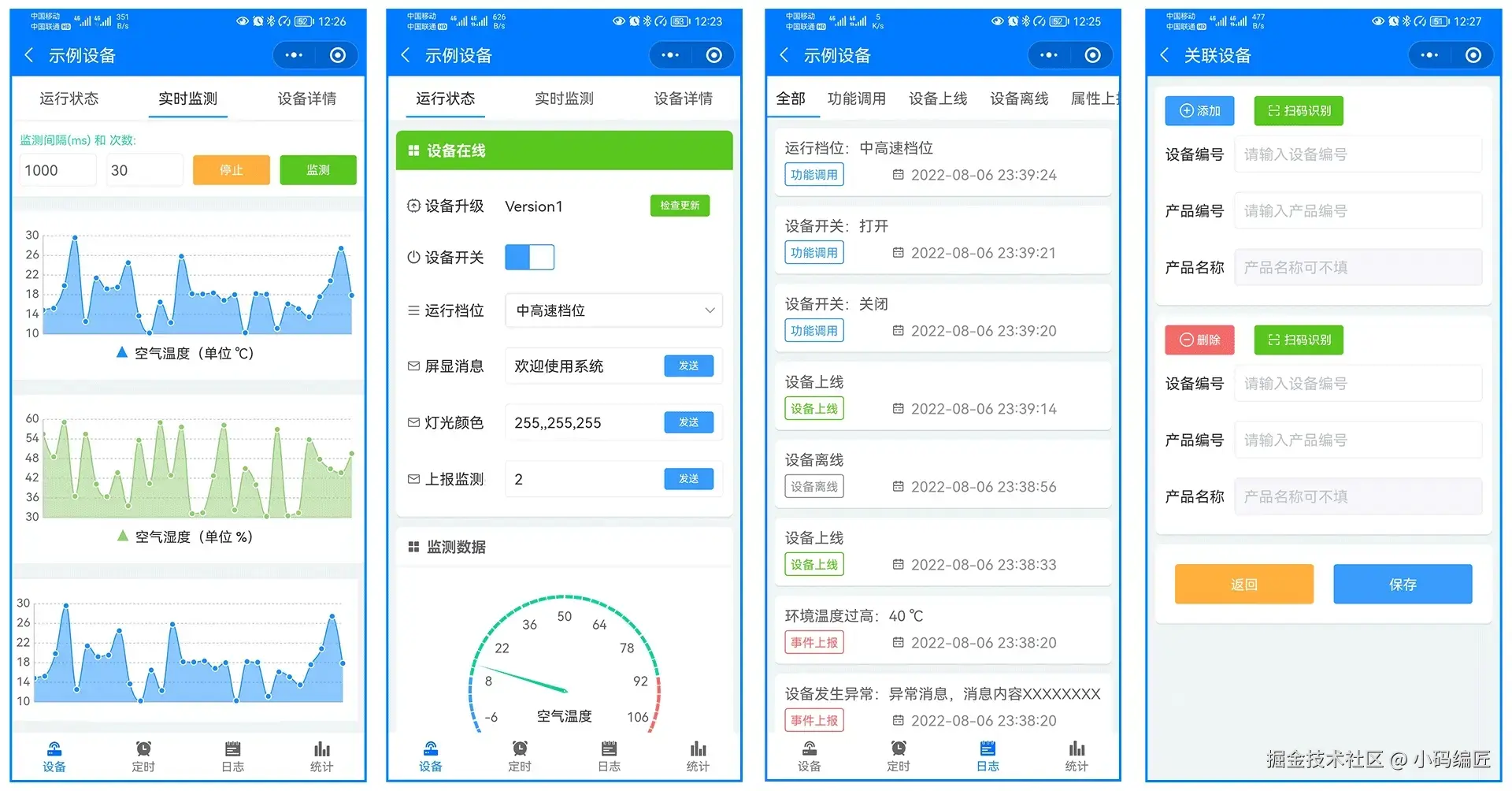 | 设备管理 | 设备详情查看、分组管理、日志记录、远程控制、状态监测 |