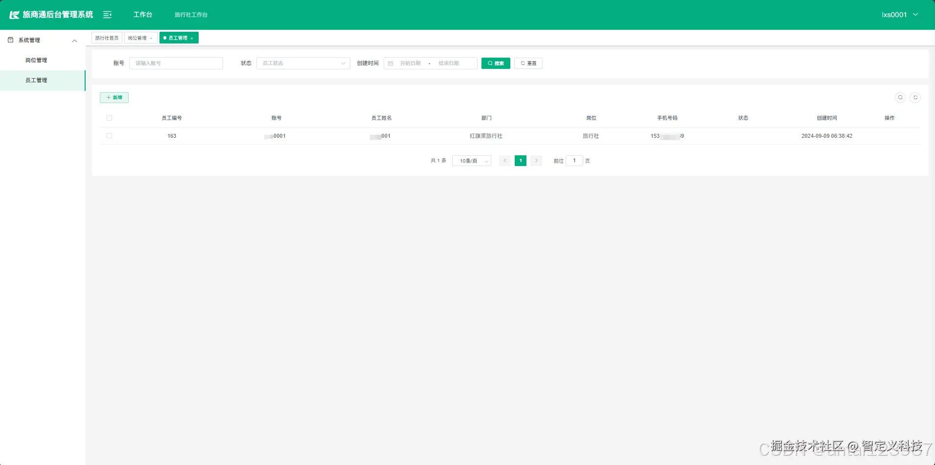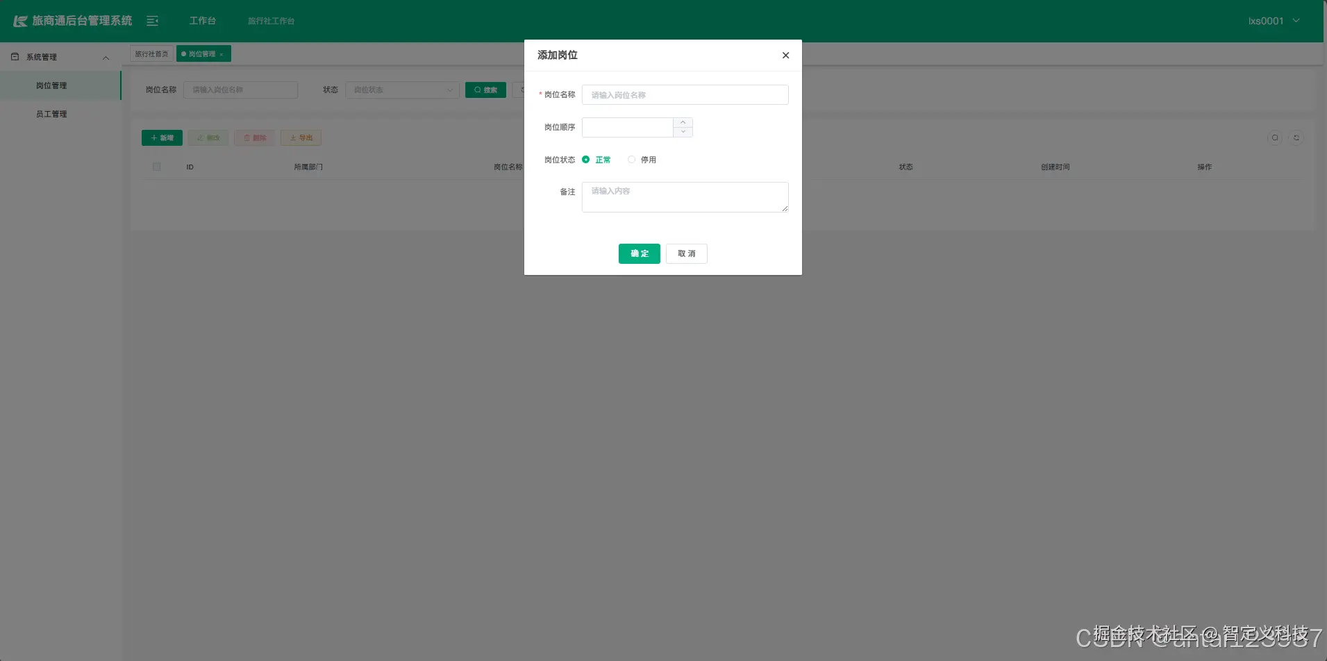 | 系统管理 | 岗位管理 | 管理旅行社内员工岗位权限信息 |