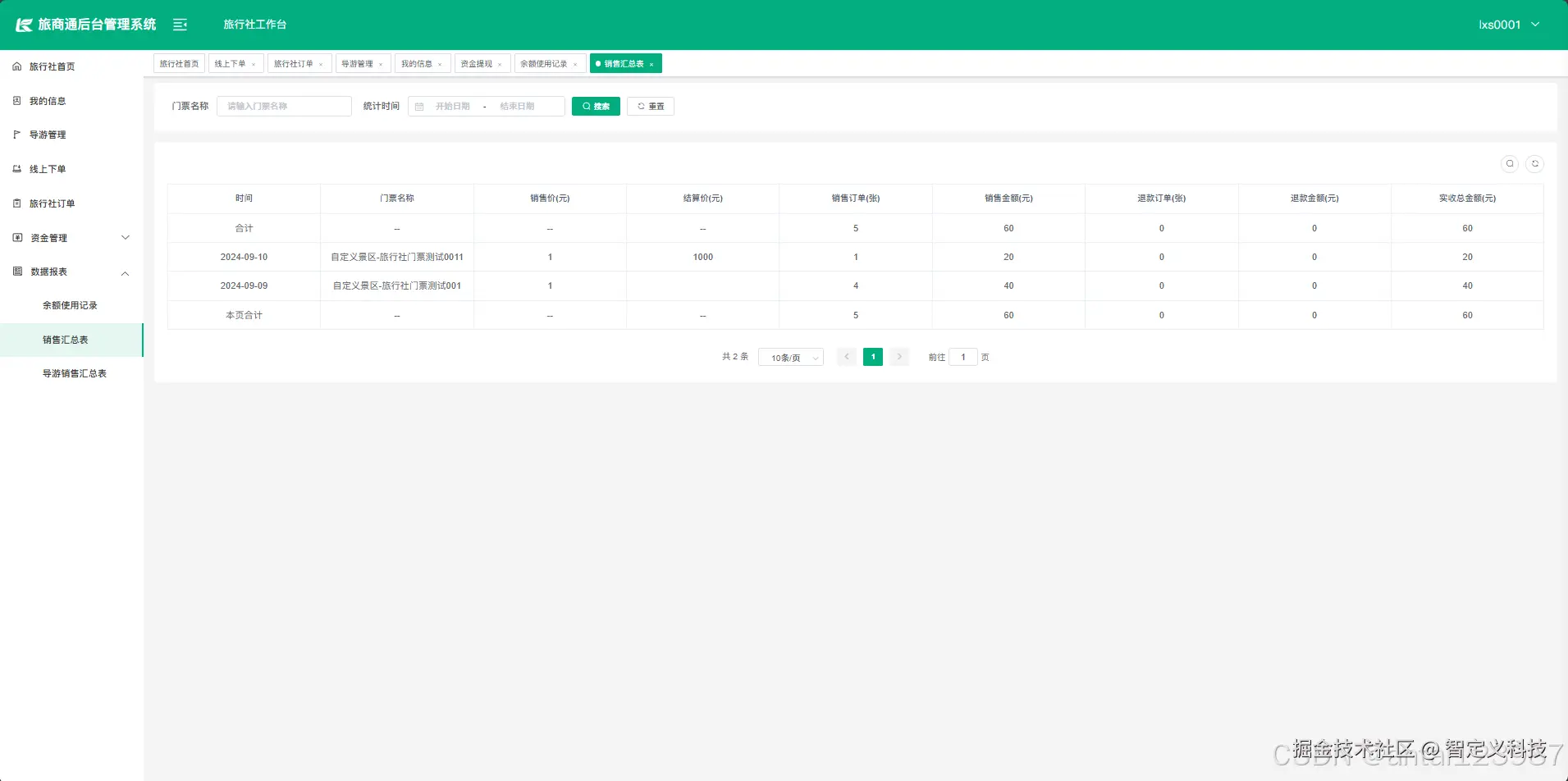 | 销售汇总表 | 对当前旅行社销售门票信息进行统计 | |