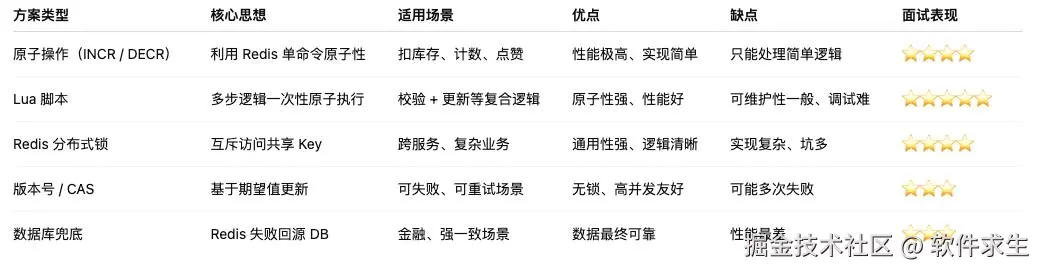 “如果只是计数、扣库存、点赞数这种场景,优先使用 Redis 原子命令。”