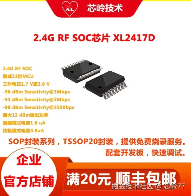 XL2417D芯片是一款低功耗、高性能和高度集成的SoC,带有2.4G收发器。它集成了高性能2.4GHz射频收发器、丰富的基带功能、32位MCU和各种外围IO。