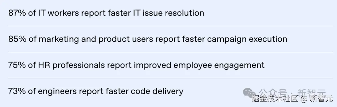 ⏱️**效率飞跃:**员工利用 AI 工作每天平均节省 「40–60 分钟」;重度用户每周节省时间超过 「10 小时」。
