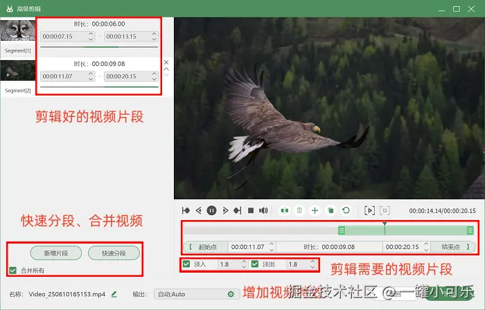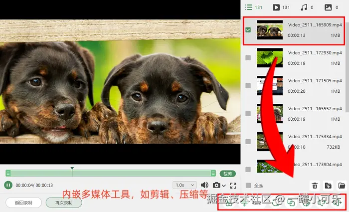 步骤3:录制结束后,无需切换至第三方工具,直接利用软件内置的视频编辑功能就能进行后期处理,支持快速分段、裁剪、合并等基础剪辑操作,高效完成视频优化。