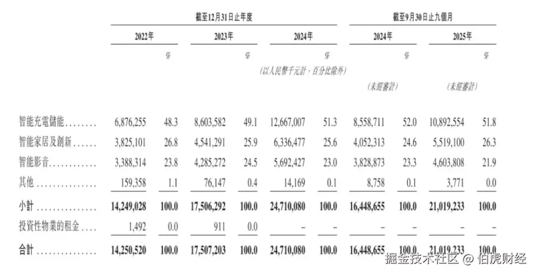 不过,根据安克创新招股书,截至2025年9月30日,包含充电宝的智能充电储能业务,仍占公司整体收入的51.8%,涵盖公司大部分智能创新产品的智能家居及创新业务,在整体收入中的占比并没有太大突破。