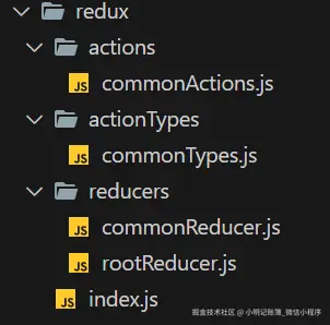 为例防止文件过大,对Redux进行了拆分目录如下: