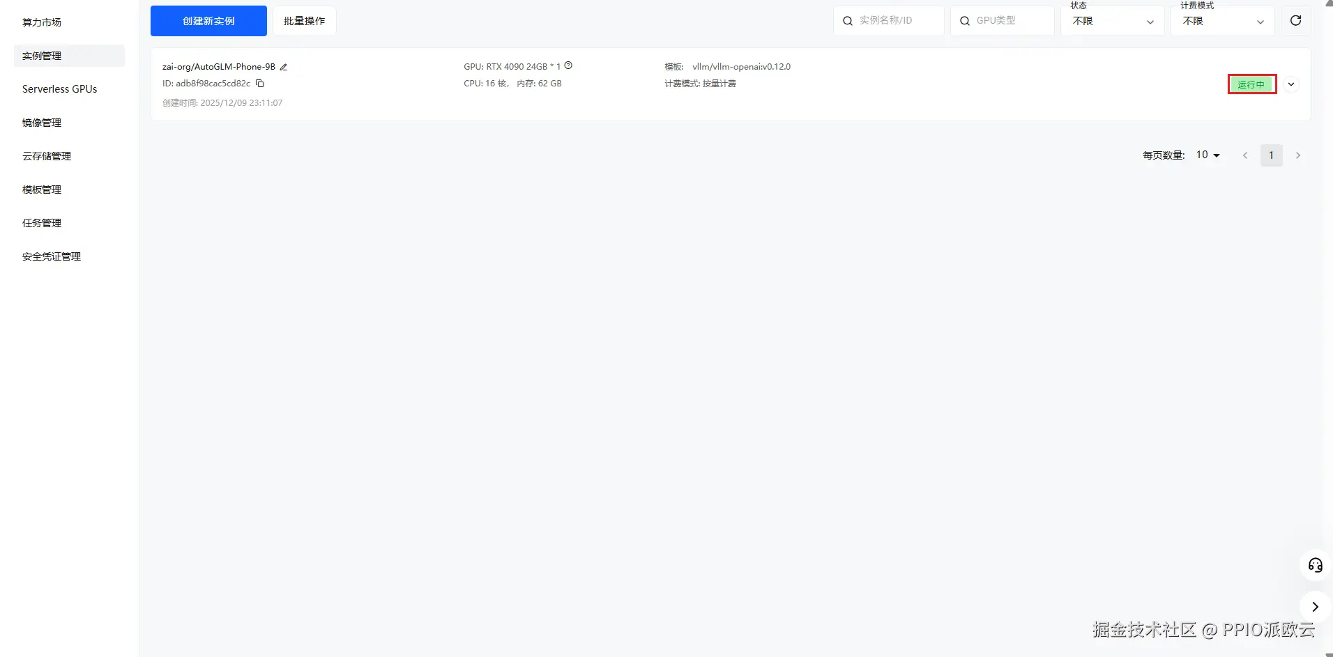 今天,PPIO 独家上新 GPU 实例模板,可一键部署 Phone Agent 的底层模型 AutoGLM-Phone-9B。