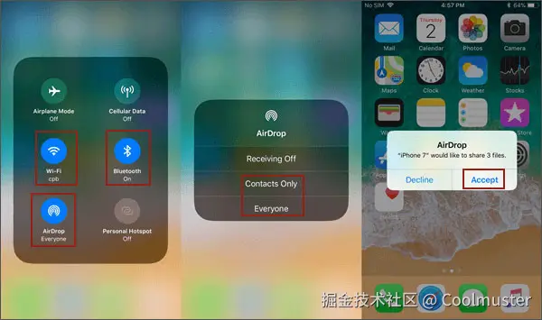 步骤 4:在接收 iPhone 上,出现提示时点击“接受”。等待传输完成,然后打开“音乐”或“文件”应用即可访问音频文件。