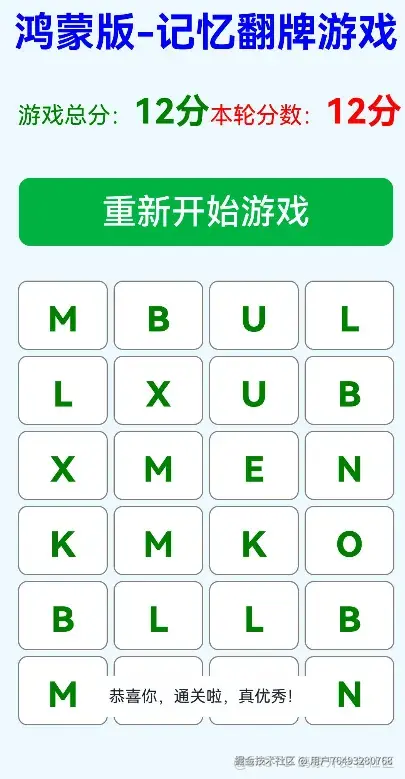 不管你是鸿蒙开发者,还是单纯想找个小游戏放松大脑,这款记忆翻牌都值得试试~