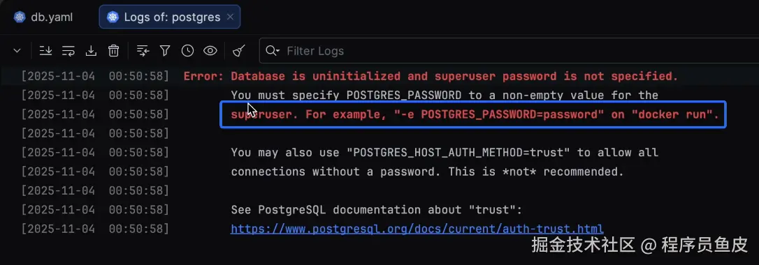 遇到缺失的环境变量或失败的 pods 时,还可以通过一键日志即时修复并重新部署,无需离开你的 manifest。