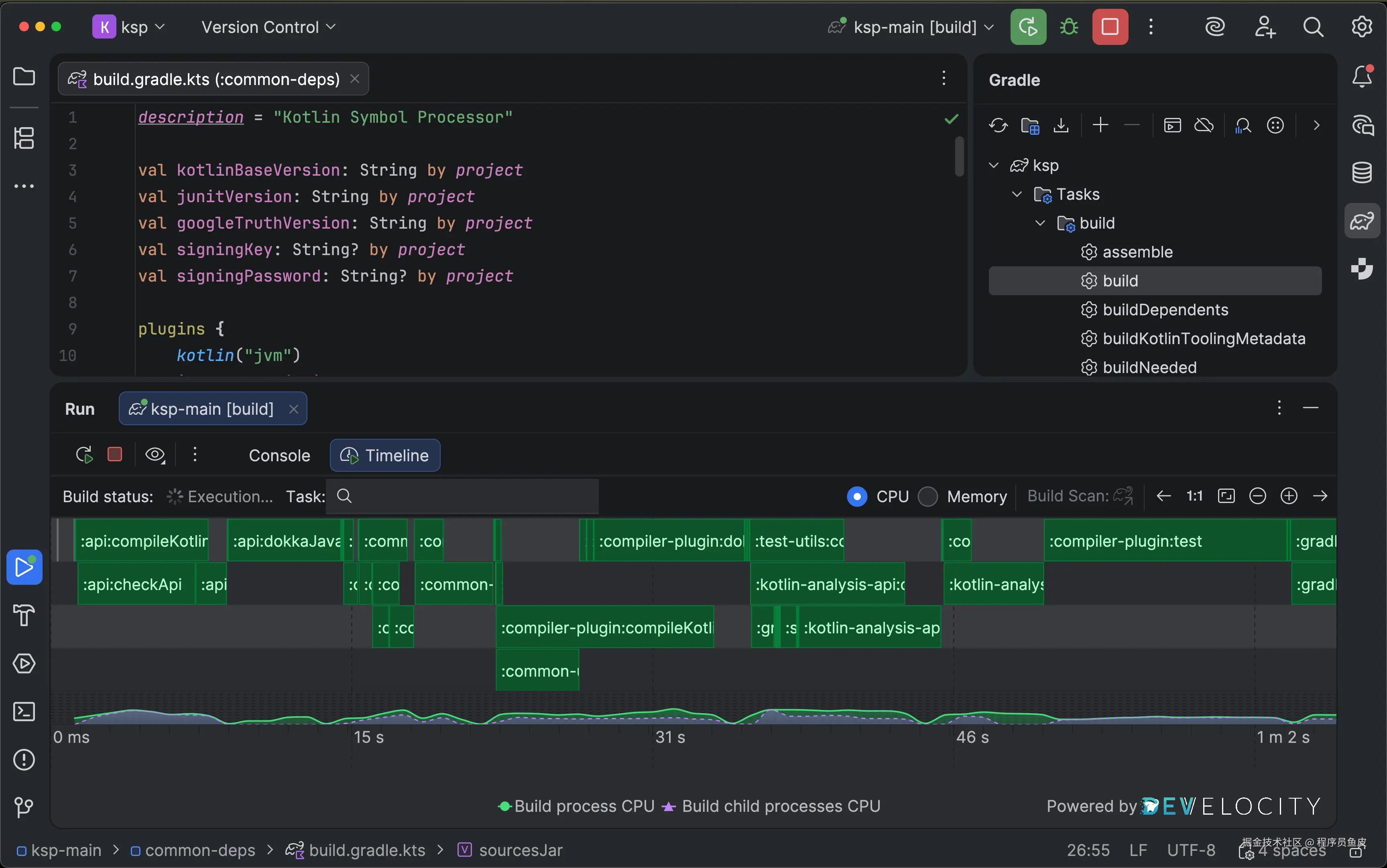 Develocity IntelliJ 插件将性能分析带入构建过程。通过它,你可以直接在 IDEA 中查看详细的构建特征,识别性能瓶颈,观察构建更改如何影响速度和资源利用率。不需要修改构建脚本 —— 只需在插件中启用相应设置即可。