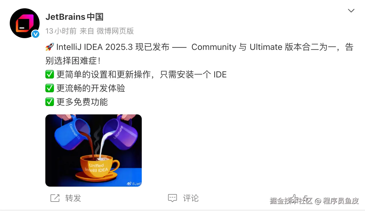 大家好,俺是程序员鱼皮。刚刚,JetBrains 官方正式发布了 IDEA 2025.3 统一版!