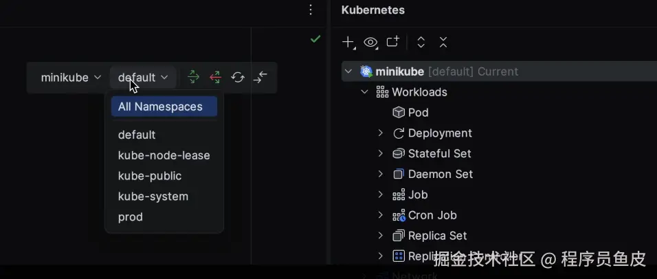 顶部有集群和命名空间选择器让你保持上下文,实时资源状态图标让你快速发现问题。