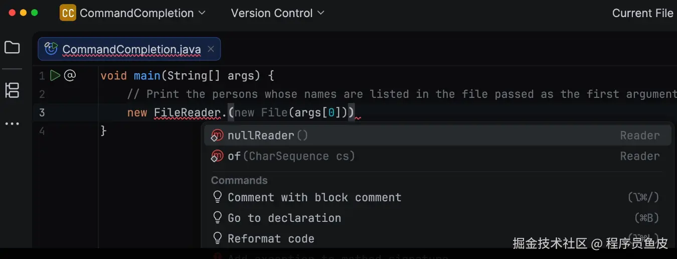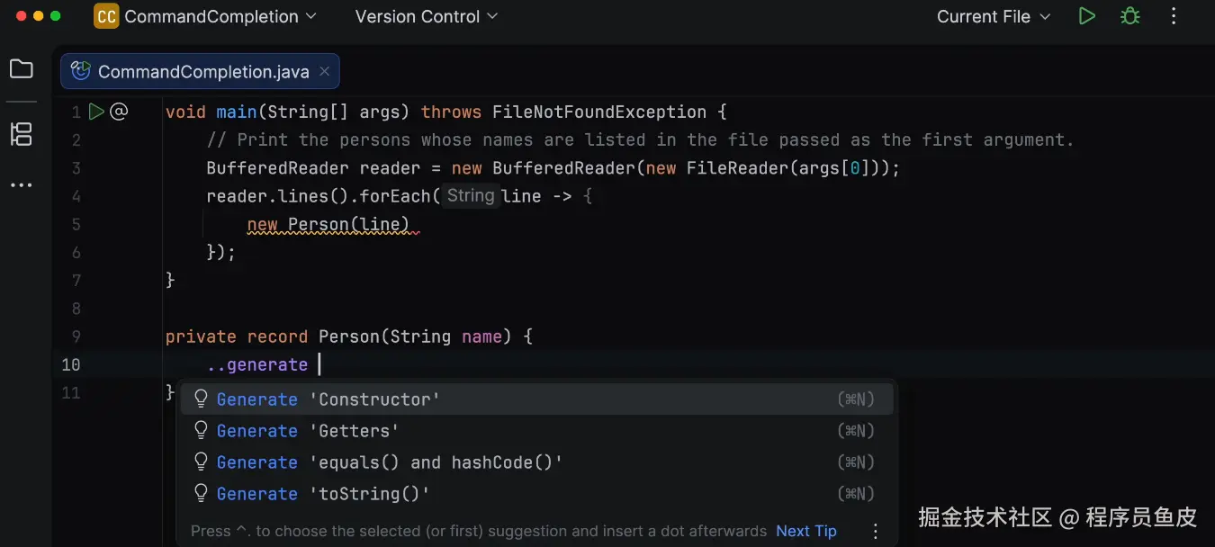 可能有同学会问,以前在 IDEA 里按 . 不就有代码补全吗?这个命令补全和以前有什么区别?