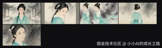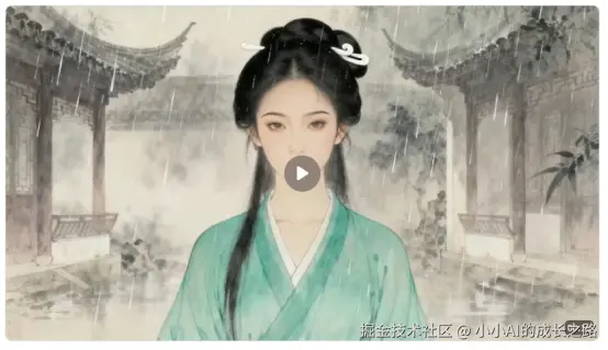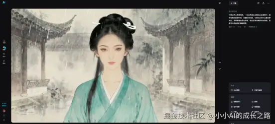 即梦AI的智能多帧功能解决了这个行业痛点。上周拍"女主雨中转身"这场关键戏,我先让即梦AI生成5张连续分镜图:正面站立、侧身45度、侧身90度、背面、转回正面。每张图都严格保持:柳叶眉、丹凤眼、白玉簪、青色罗裙。