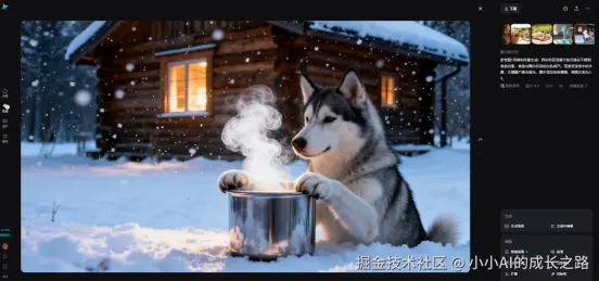 平均每条生成耗时41秒。拿到的素材几乎不用修:狗毛细节清晰到能看见层次,雪花轨迹符合重力逻辑,最关键的是画面干净到无需二次抠像。我直接拖进剪映加字幕、配乐、调色,一条原创视频10分钟搞定。