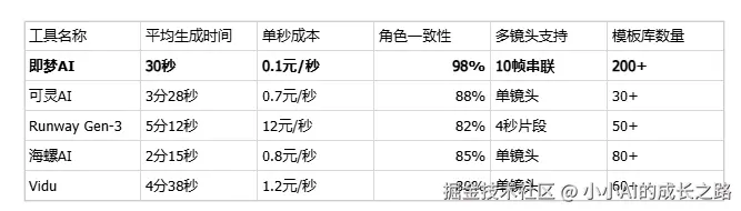 - 即梦AI将时间压缩到30秒内,且5秒视频仅消耗10积分。换算成真实成本,批量生产100条短视频,即梦AI能比Runway节省近10小时工时,成本仅为后者的1/20。