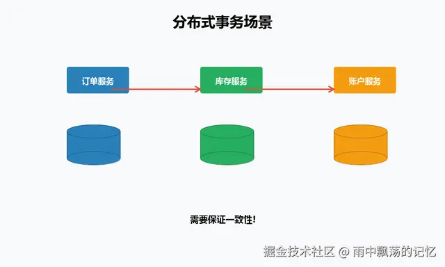 网络不可靠 - 服务调用可能超时、失败 部分成功 - 有的服务成功,有的失败 数据不一致 - 各服务数据库状态不同步 回滚困难 - 每个服务的事务独立提交