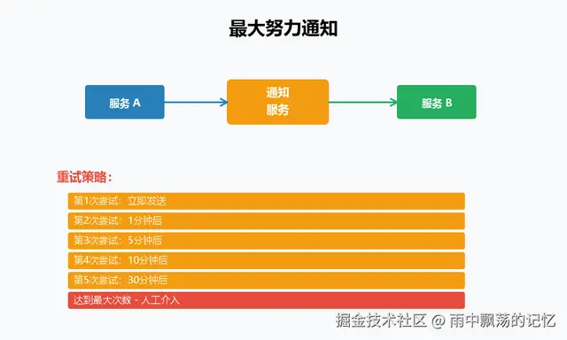 | 最大努力通知 | 弱一致 | ⭐⭐⭐⭐⭐ | ⭐⭐ | 通知类场景 |