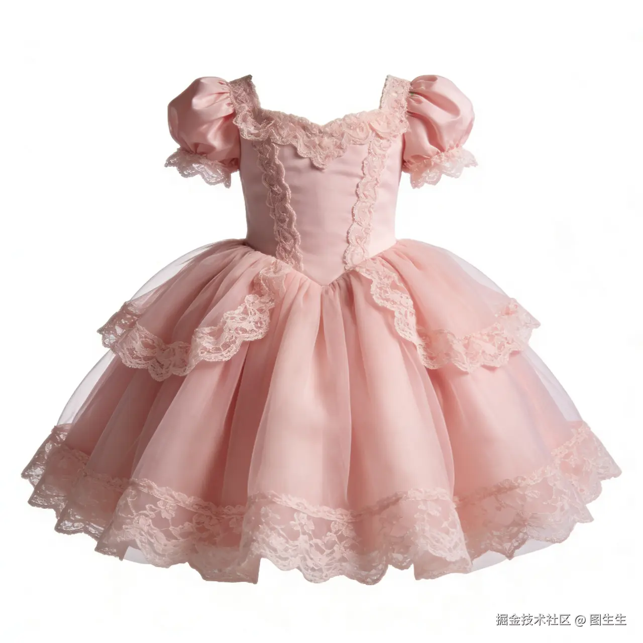 生成成果:女童转圈动态可爱,蓬蓬纱层次分明,派对场景温馨,适配母婴店、宝妈社群种草图,家长一眼心动