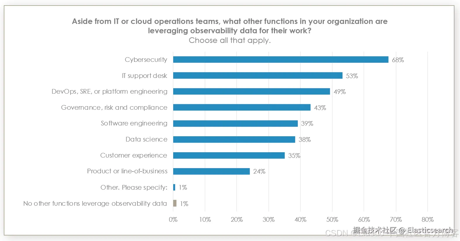 广泛的使用表明,可观测性投资产生的价值远超其传统范围。其他积极使用可观测性数据的团队包括: