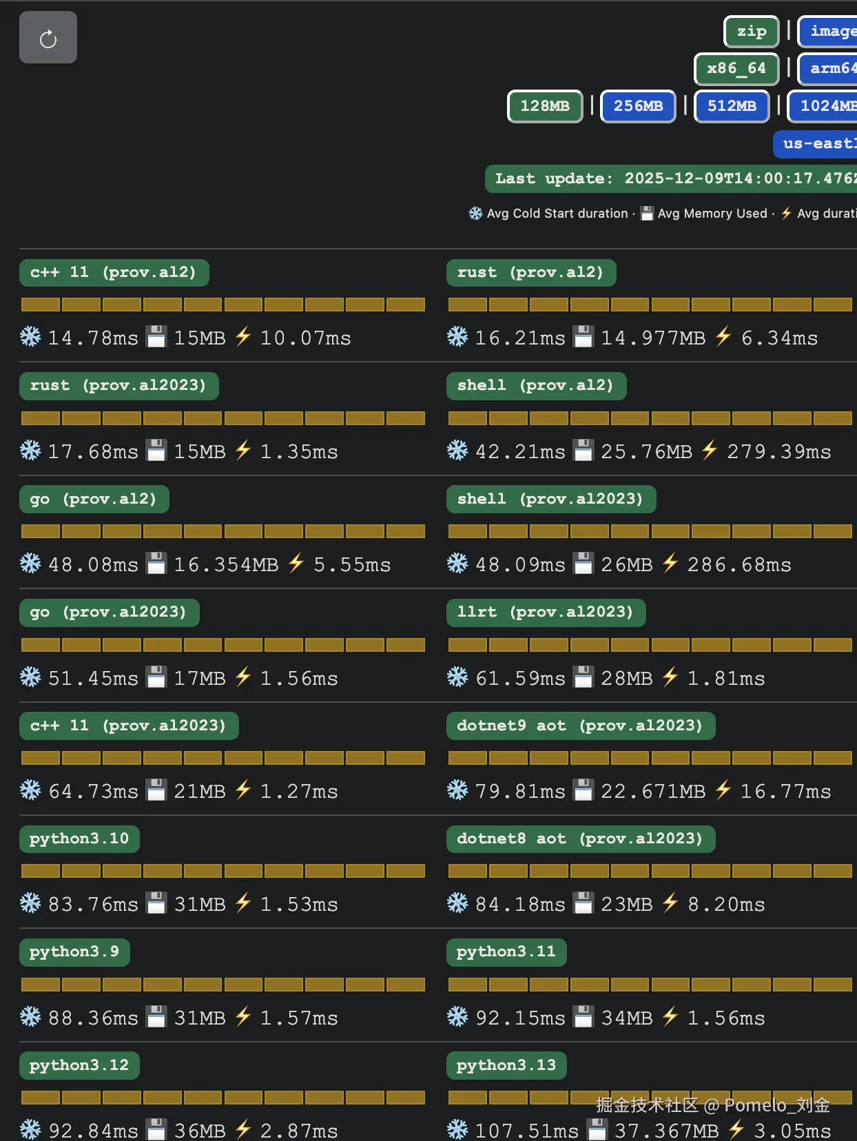 AWS Lambda 冷启动时间(Serverless 场景)“冷启动”就是你的程序从“沉睡”到“完全唤醒并开始工作”所需的时间。