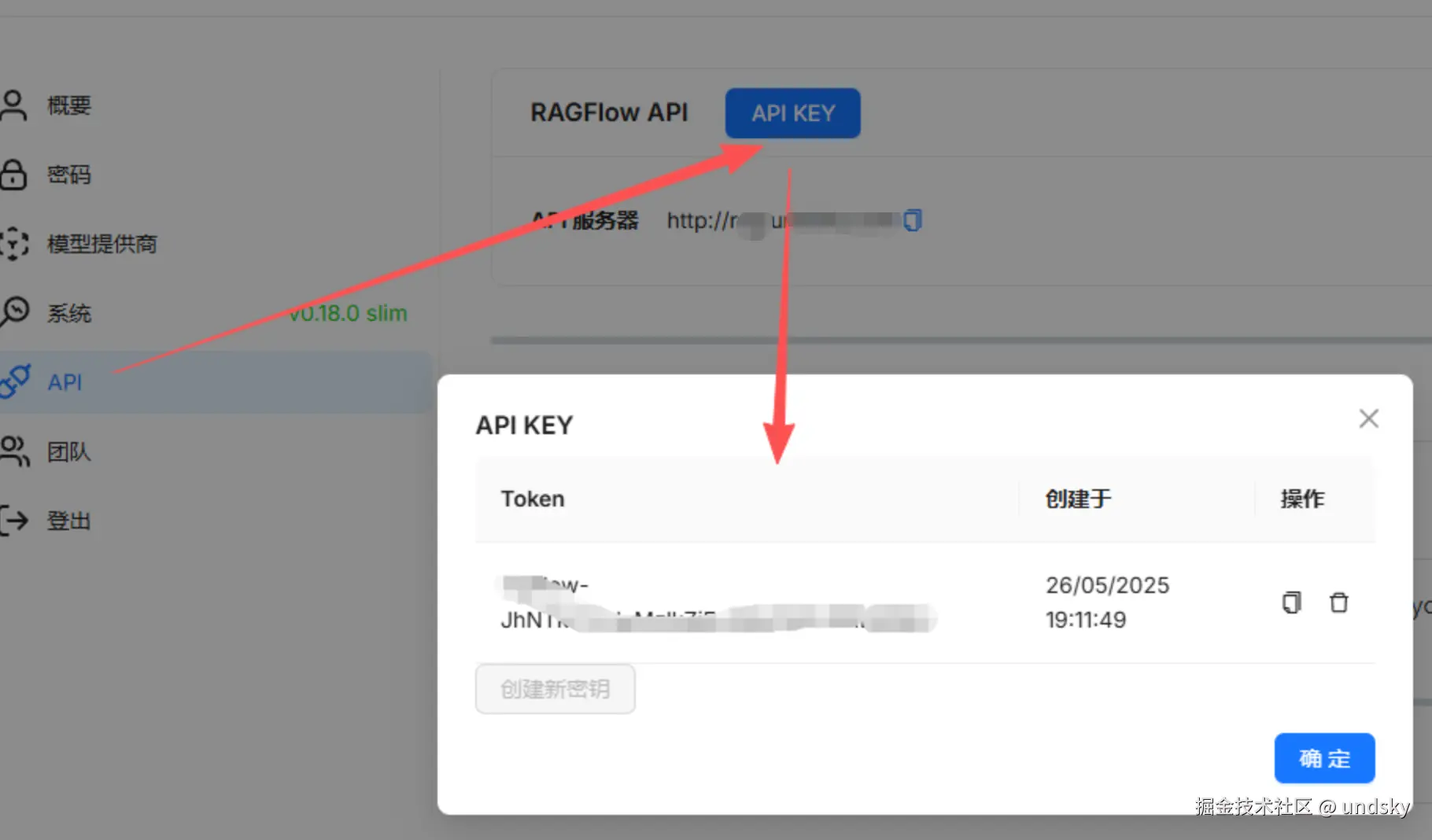 作用: API Key 就像是一把"钥匙",让 Dify 能访问 RAGFlow 的知识库。