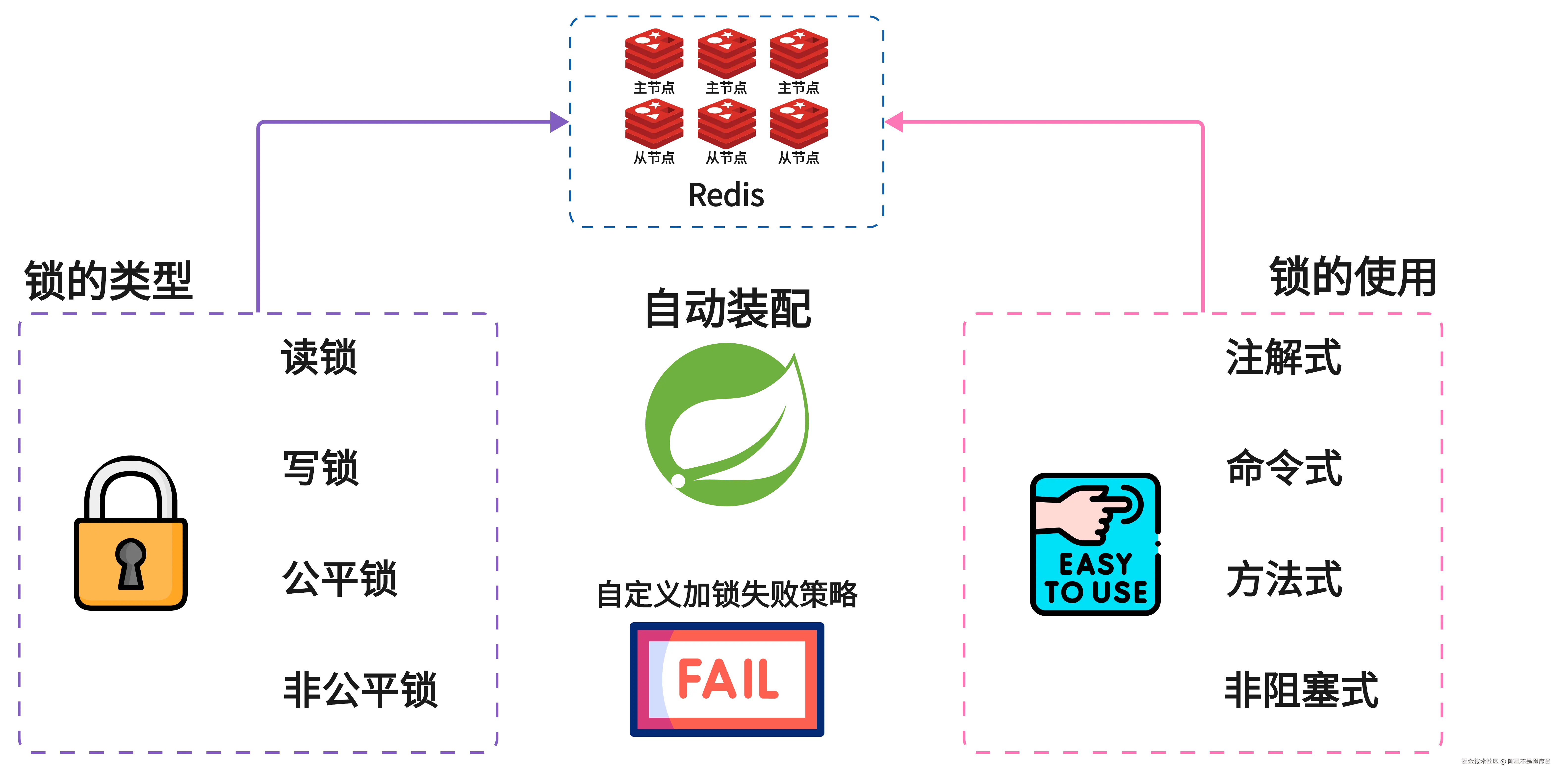 - 🔹 Plus 方案:对 Redisson 重构设计,支持的锁类型:读锁、写锁、公平锁、非公平锁。锁的使用:注解化、命令式、方法级。可自定义处理失败策略。