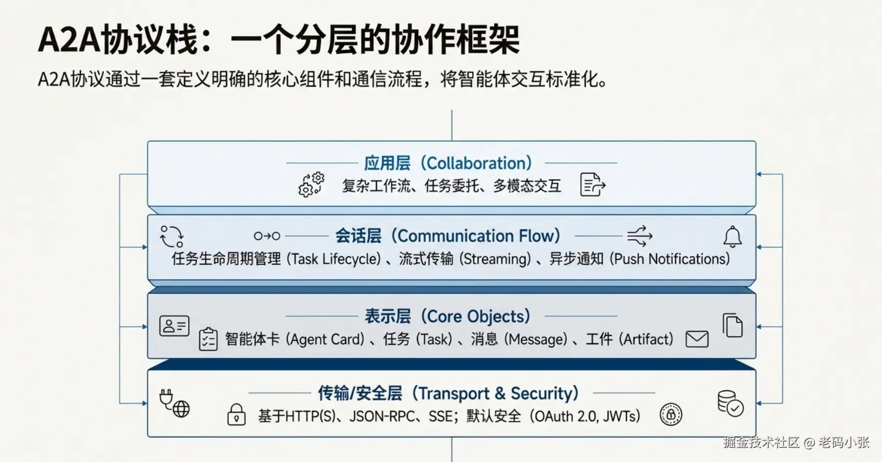 如果说 MCP 管的是“Agent 怎么伸手碰世界”,那 A2A 管的就是“Agent 怎么互相说话”。