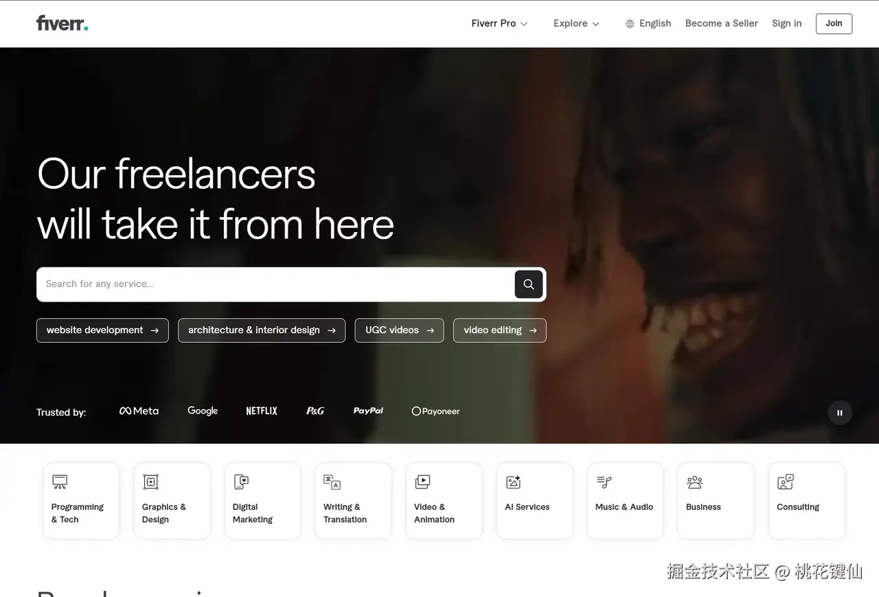 Fiverr 的模式对程序员非常友好,有点类似于海外的程序员兼职接单版本的闲鱼,不是等着别人发需求,而是主动发布服务卡片,可以把技能拆成不同产品,例如写一个 Python 爬虫脚本、开发小型游戏原型、制作自动化工具等。