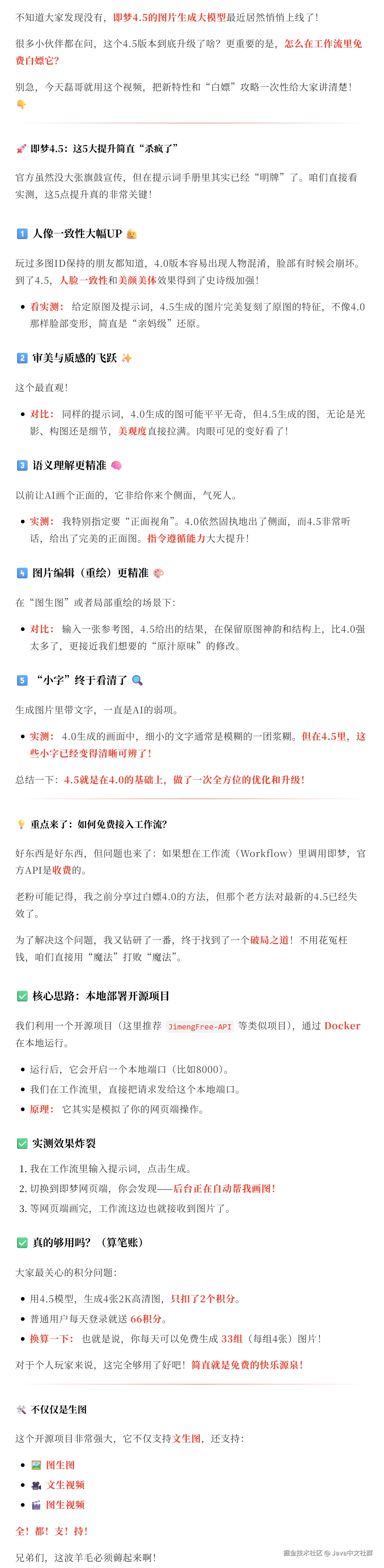 - 先讲即梦 4.5 的五大特性(12345 列得清清楚楚)。