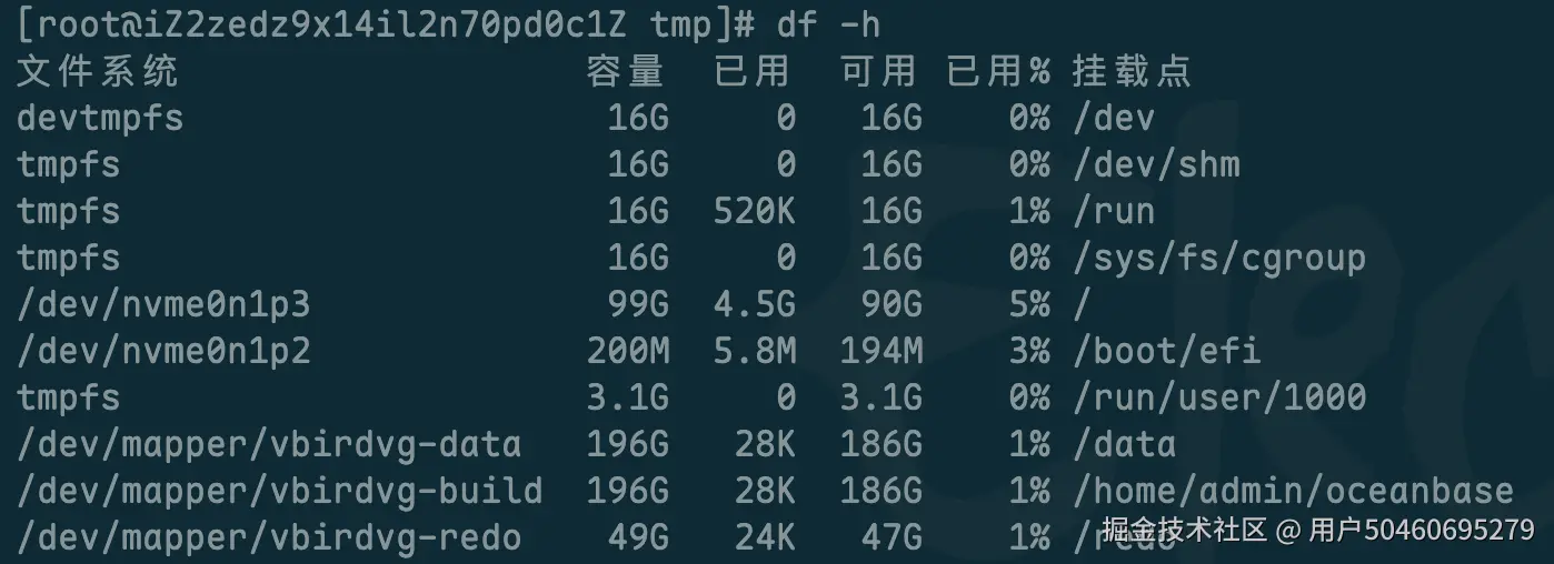 mount /dev/vbirdvg/build /home/admin/oceanbase
