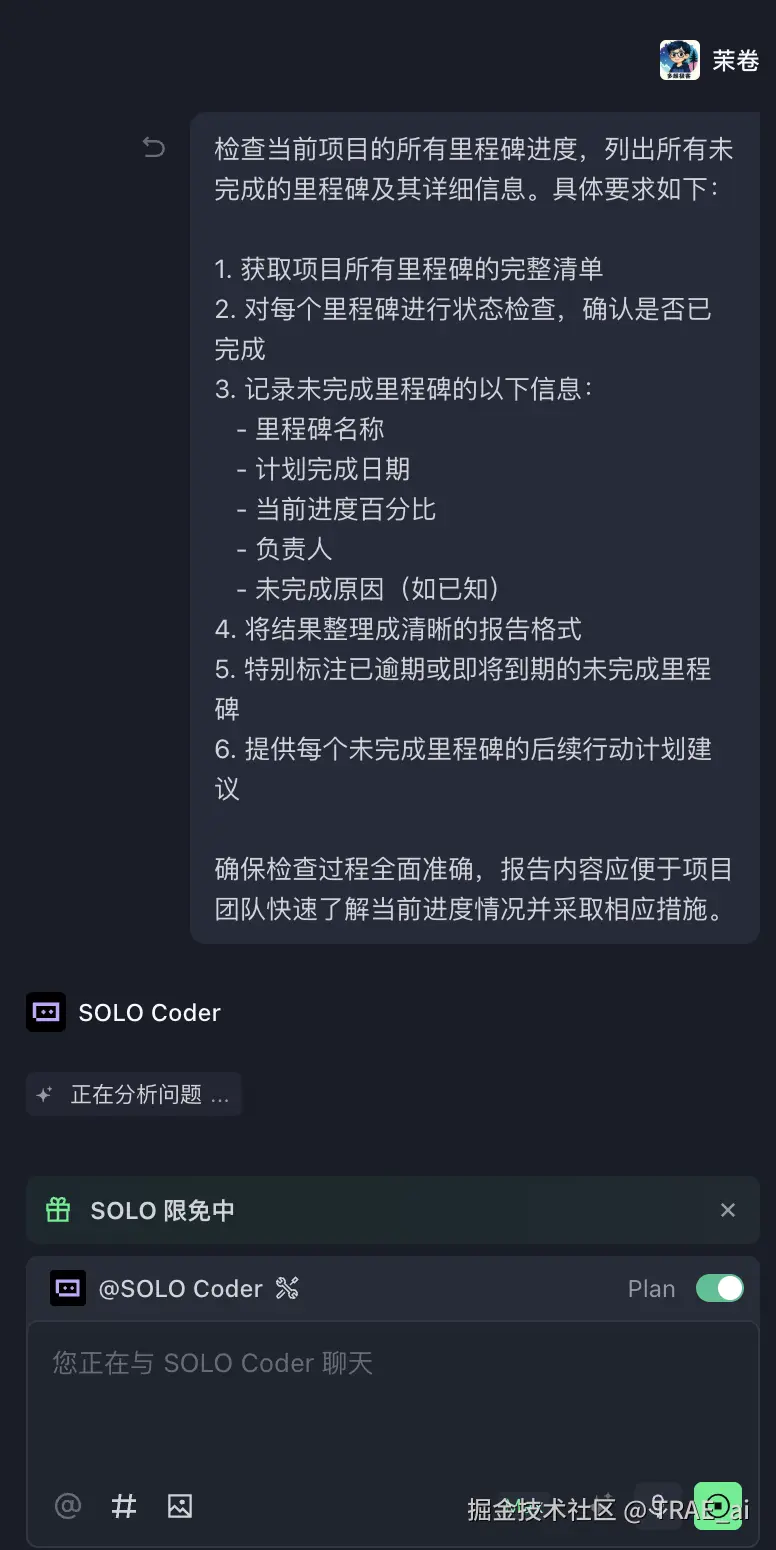 这就是 SOLO Coder 的价值所在:与一键生成不同,Coder 提供的是可控的、结构化的开发过程。