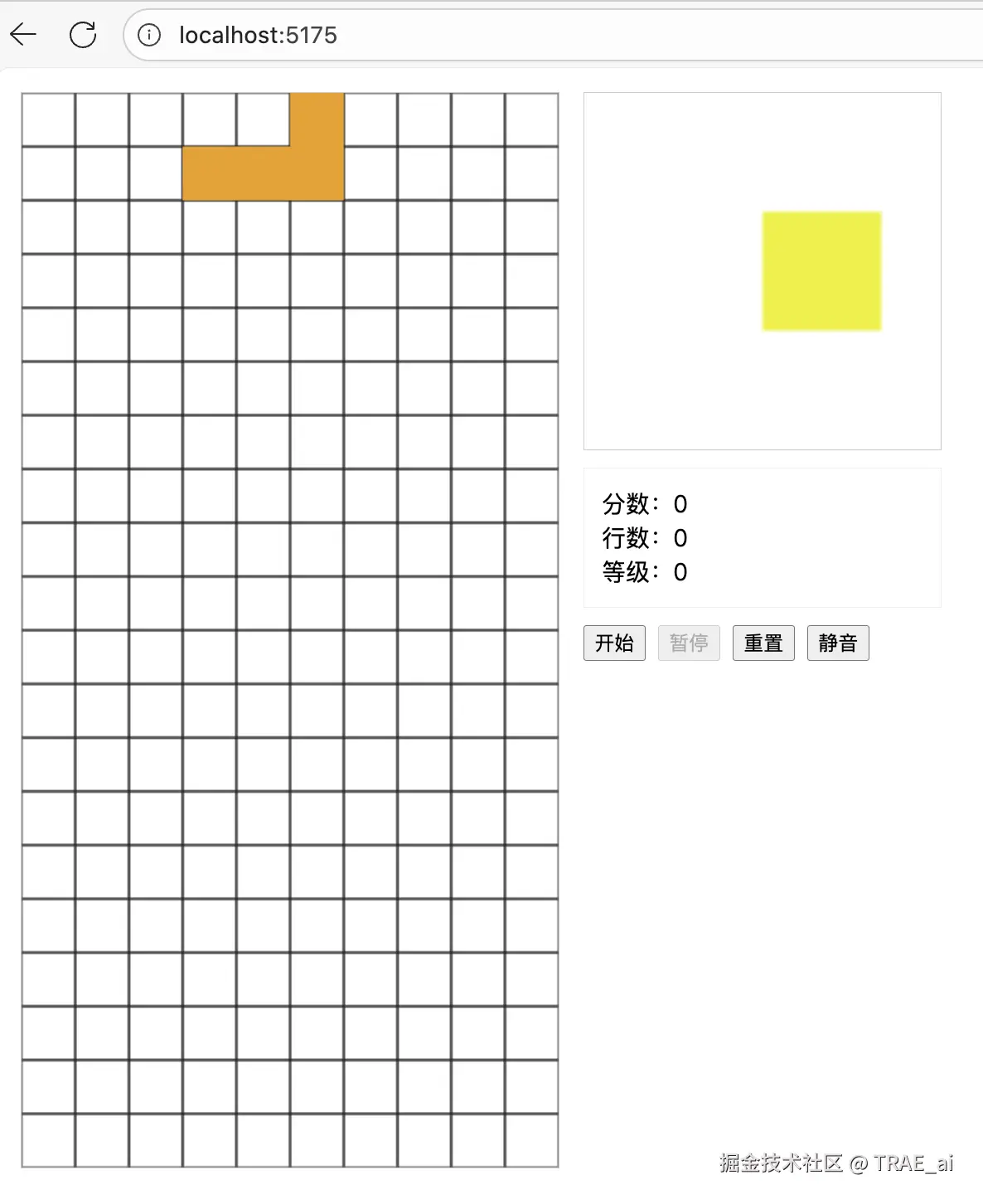 原始提示词: 开发一个经典的俄罗斯方块游戏