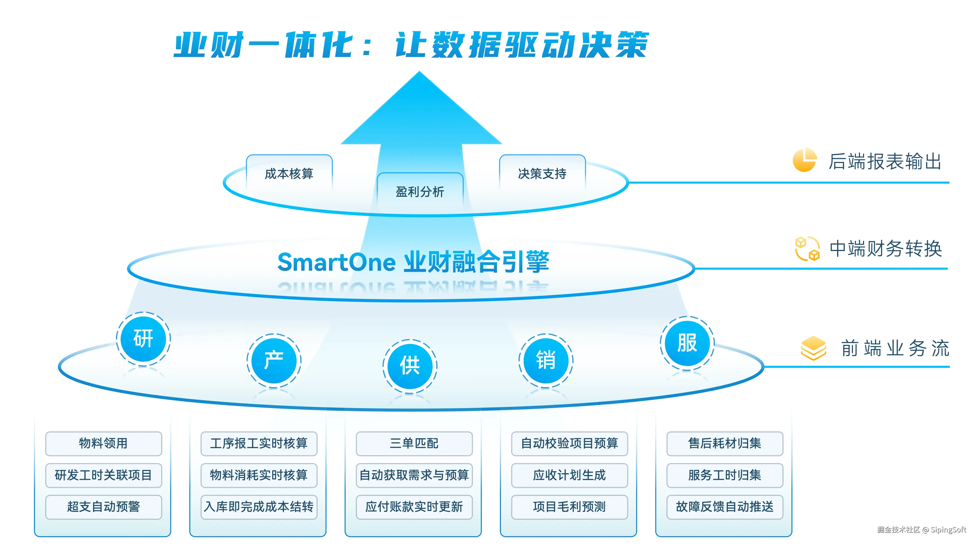 针对“成本核算难、盈利模糊” 的痛点,SmartOne致力于将财务管控逻辑原生嵌入每个业务环节,打通 “前端业务流 - 中端财务转换 - 后端报表输出” 链路,实现业务数据向财务数据的自动流转与闭环管理:
