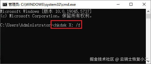 输入【chkdsk X: /f】(将X替换为您的U盘盘符,如G、H等)。