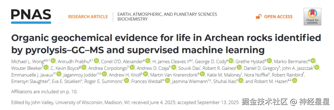 相关研究以「Organic geochemical evidence for life in Archean rocks identified by pyrolysis–GC–MS and supervised machine learning」为题,收录于美国国家科学院院刊 PNAS。