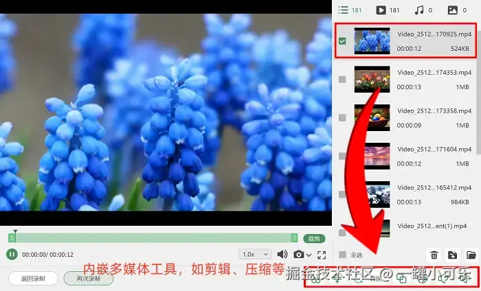 而且这款录屏软件的实时标注功能也比较实用,录制网课或演示视频时,可以直接在屏幕上添加文字、箭头、高亮等标记,边录边注解,省去后期二次编辑的麻烦。