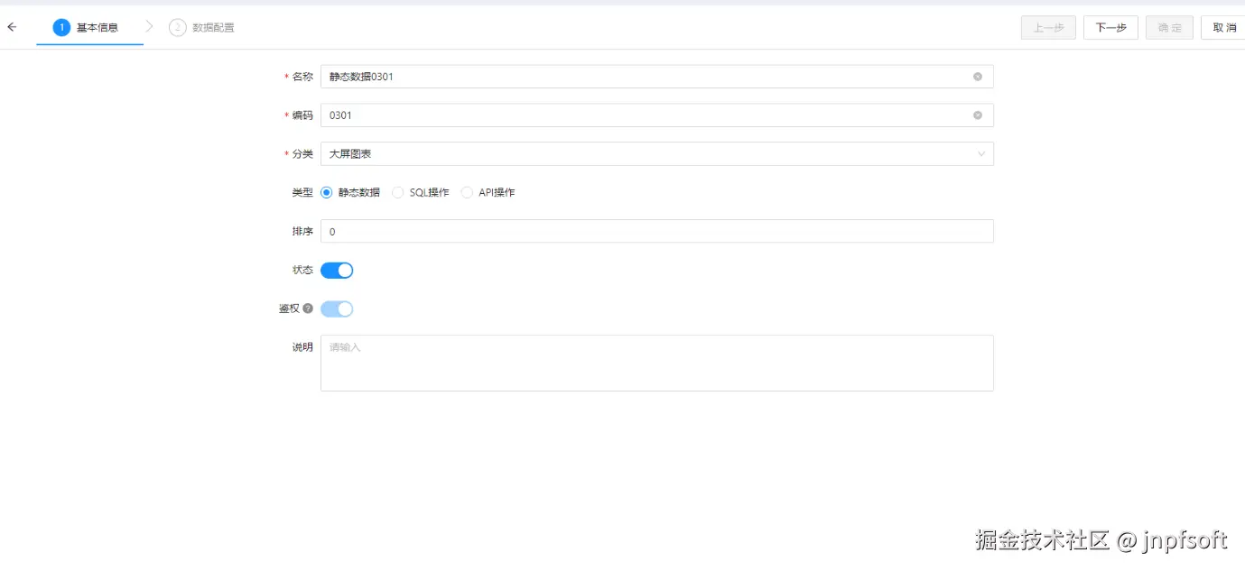 填写完成基本信息后点击“下一步”进行数据配置