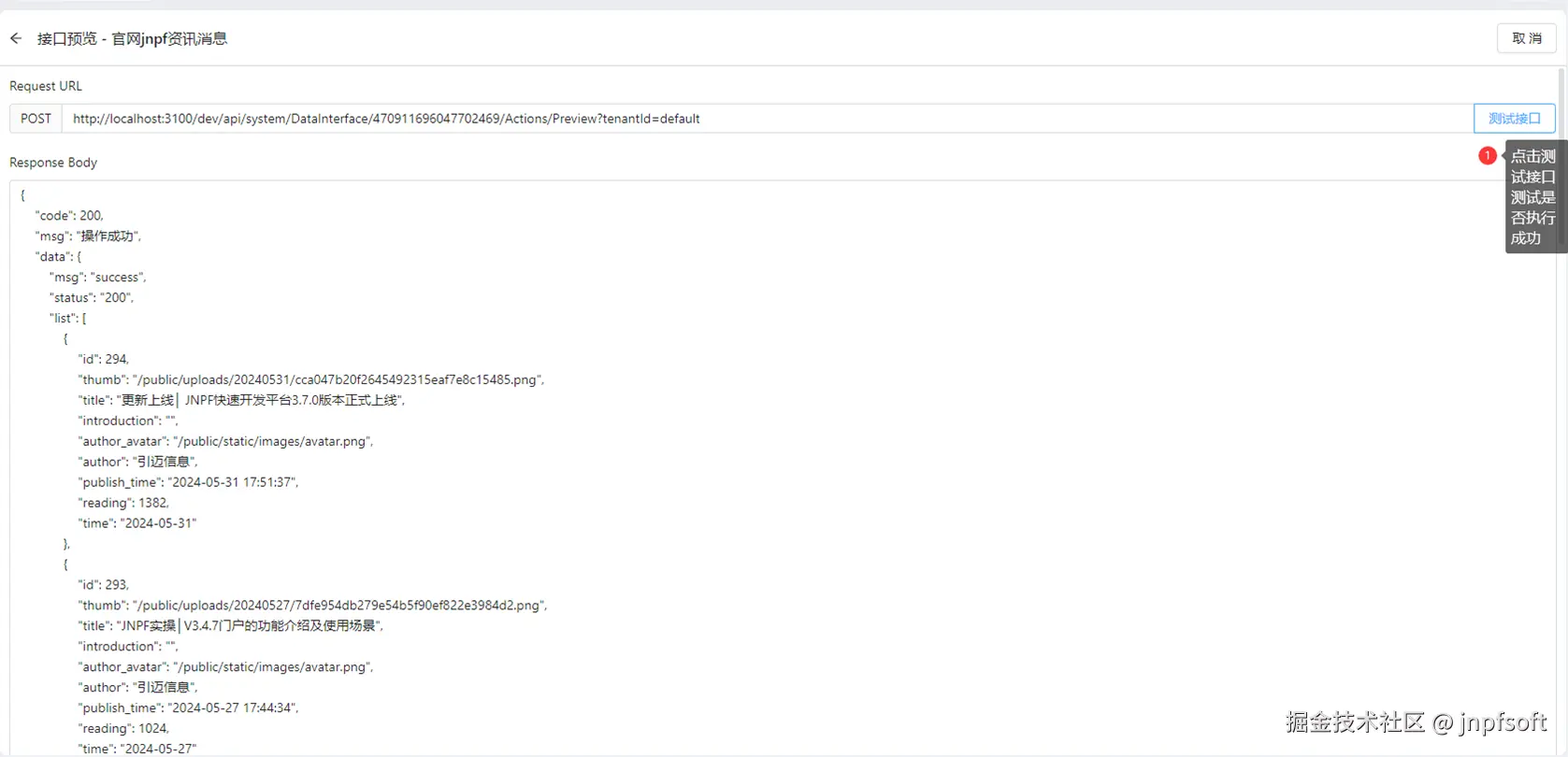 点击 “更多”下的预览,可以预览数据接口效果