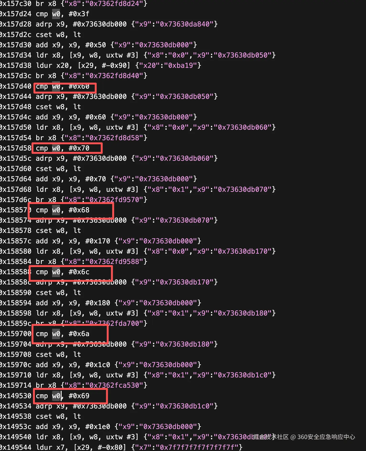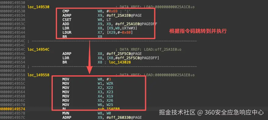 结合trace验证,确定为分发指令到0x15af88里边执行