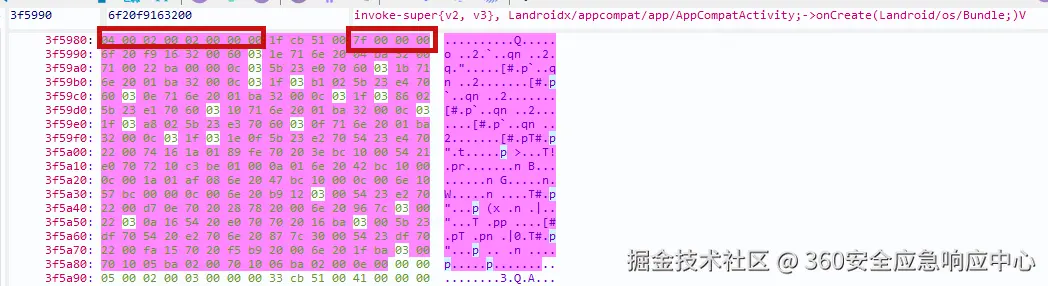 在dump的dex中查找指令开头位置再0x63f77c