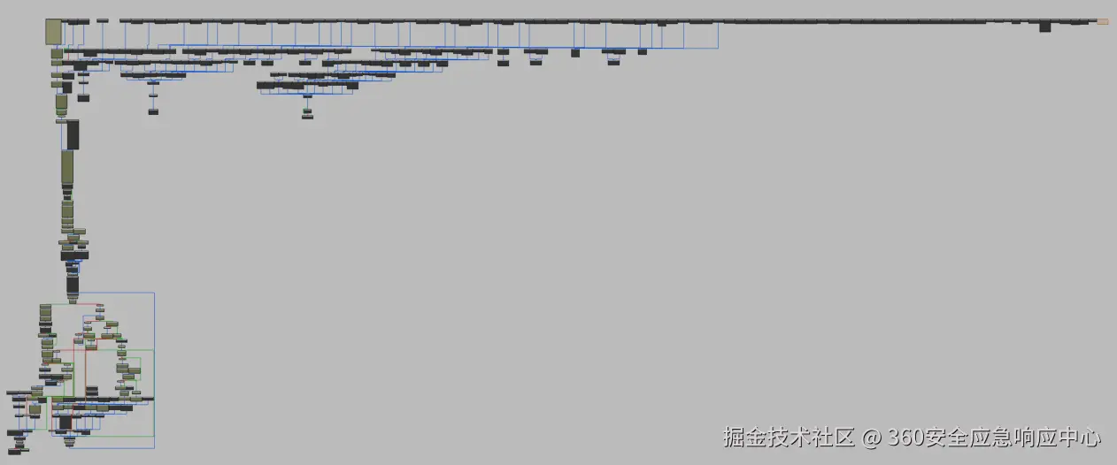 修复后的cfg,可以看出很多跳转缺失,纯靠静态分析是非常困难,需要结合动态调试来下一步分析