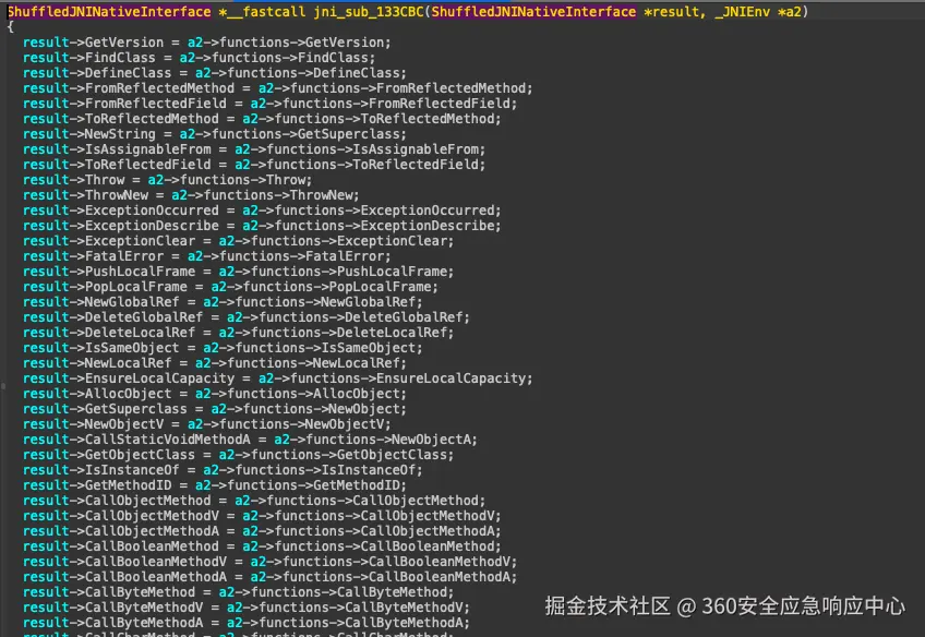 JNItrace防护 1、通过jnienv计算所有jni函数偏移量来通过函数指针形式进行调用隐藏所有jni的调用过程 2、通过jnienv获取jni接口地址,检测jni接口函数是否在libart范围内,以及jni函数开头是否改变,防护Jnitrace、frida-trace、xposed实现的jnitrace。