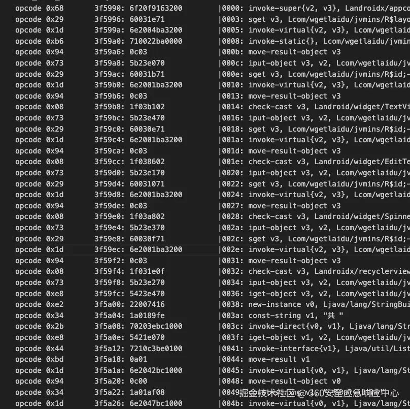 接下来就是通过dex索引查找函数一步步进行字节还原,需要手工对照一点点还原比较耗时;能否取巧结合ai方式进行还原,可以进一步实践;