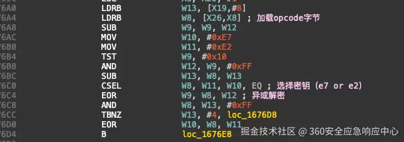 分析0x16766c取指后操作进行字节码解密处理