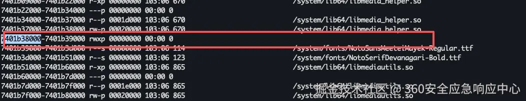 通过hook registernative获取到MainActivity.onCreate的地址在0x7401b38088 查看maps内存空间可以定位注册在以下标记的一段匿名可执行内存空间中