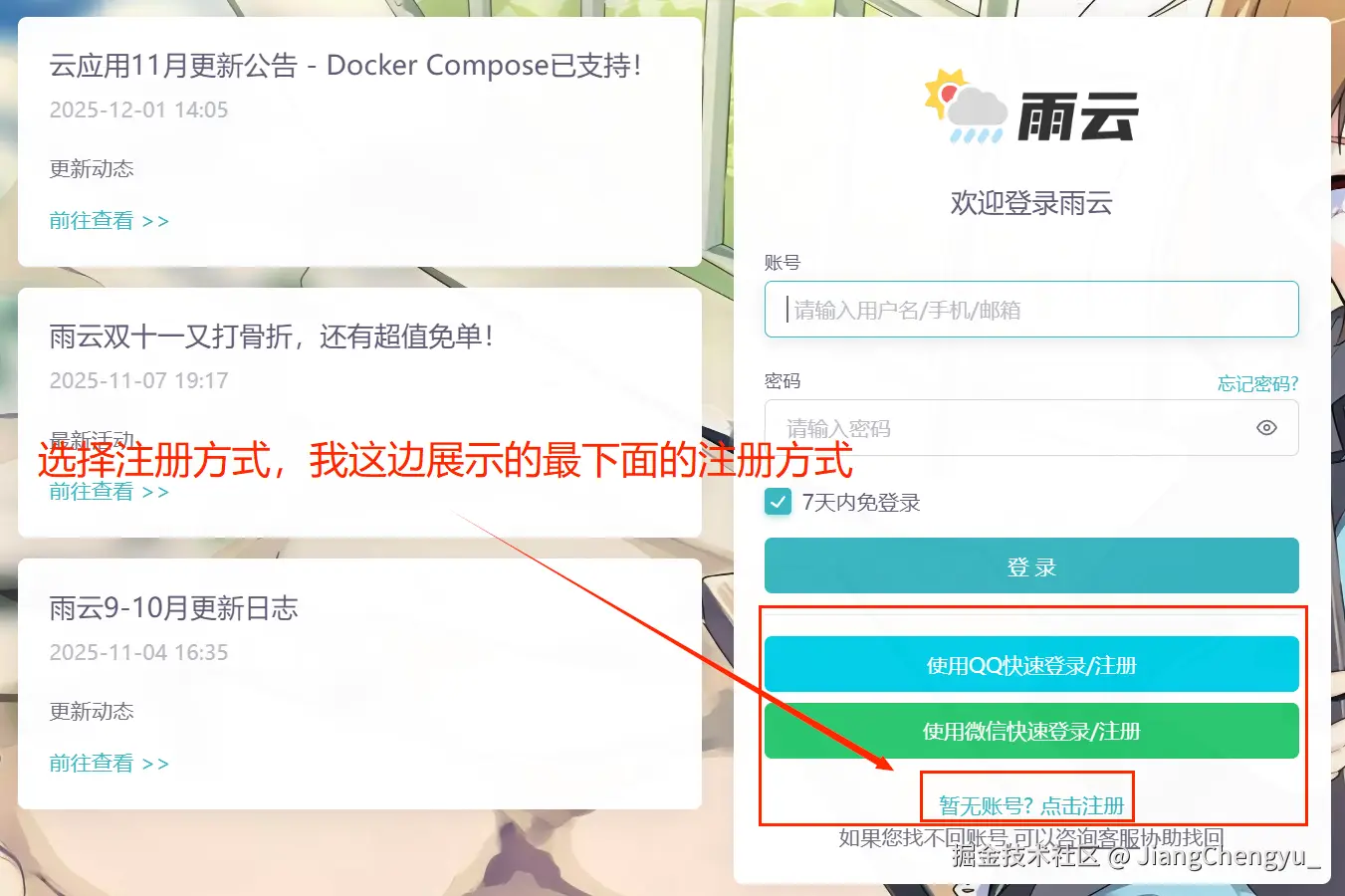 到达登录页面,选择注册方式(这里我展示的是最下面的注册方式);