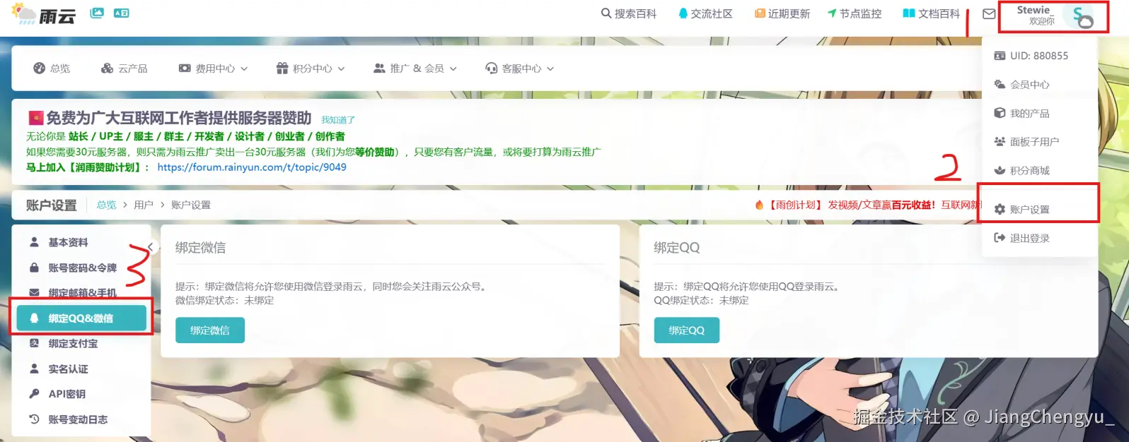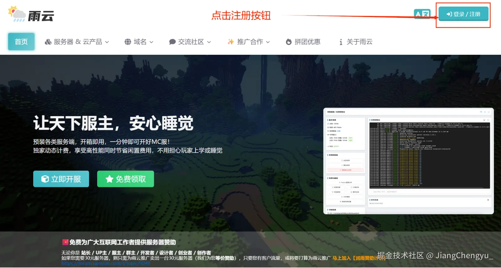 雨云服务器: <雨云全方位上云指南 - JiangChengyu_ 的专栏 - 掘金>