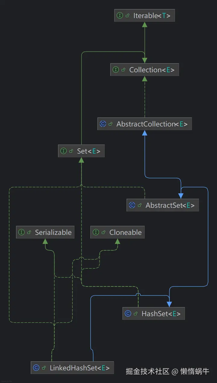 我们都知道Set存储的是单值元素,这里借用了HashMap来实现。