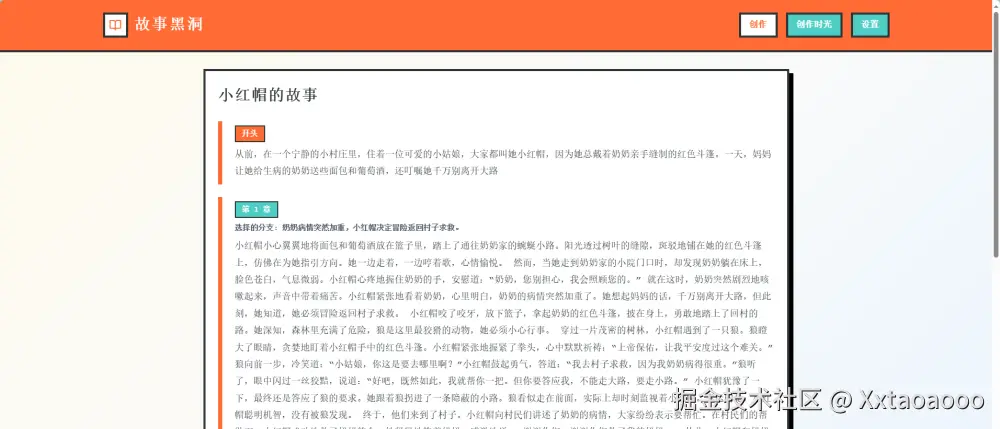 故事创作页(核心,树形结构清晰展示整个故事的发展路径与分支概览):